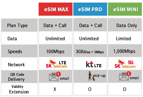 – eSIM MINI: SKT roaming eSIM offering data only (no Korean phone number)