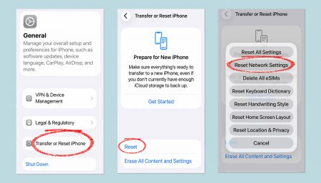 Settings → General → Transfer or Reset iPhone → Reset → Reset Network Settings